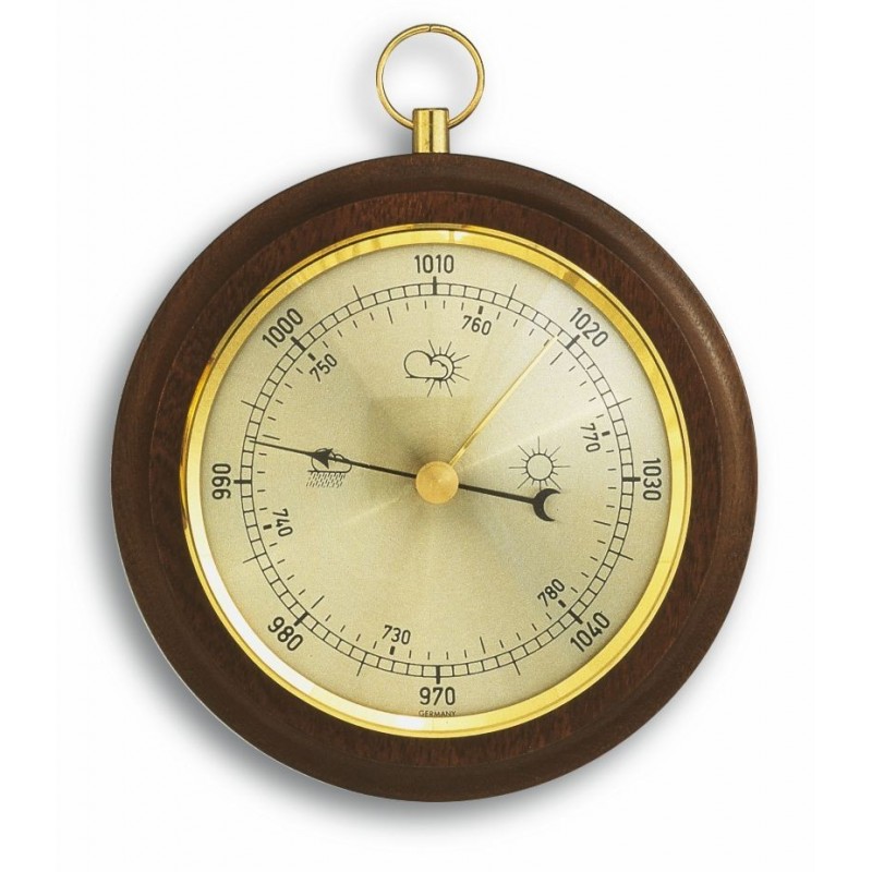 Analogový barometr s tělem z masivního dřeva (dekor ořech) určený k zavěšení. Ciferník barometru má průměr 136 mm. Technická specifikace