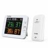 - barvy na displeji – čas, datum, zkratka názvu dne bílá, vnitřní teplota a rel. vlhkost oranžová, vnější teplota a rel. vlhkost zelená