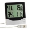 Digitální teploměr s vlhkoměrem měří vnitřní teplotu a vlhkost a díky kabelovému čidlu rovněž venkovní teplotu a vlhkost. Je vybaven pamětí pro naměřené minimální a maximální hodnoty, které lze manuálně vynulovat tlačítkem RESET. Kabel s čidlem je dlouhý cca 1,5 m. Teploměr je napájen 1,5V AAA baterií, která je součástí balení. Lze jej postavit na rovnou podložku nebo zavěsit na zeď.