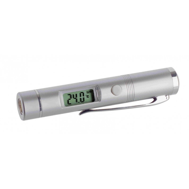 Infračervený teploměr FLASH PEN je ideálním pomocníkem, pokud potřebujete zjistit povrchovou teplotu předmětu. Použití přístroje je bezkontaktní, stačí jen namířit z co největší blízkosti na požadovaný objekt a teplota se okamžitě zobrazí na displeji. Velmi praktický je také klips umístěný na kovovém krytu, díky kterému budete mít teploměr vždy po ruce. Přístroj zvládá měřit teplotu od -33°C do +220°C.