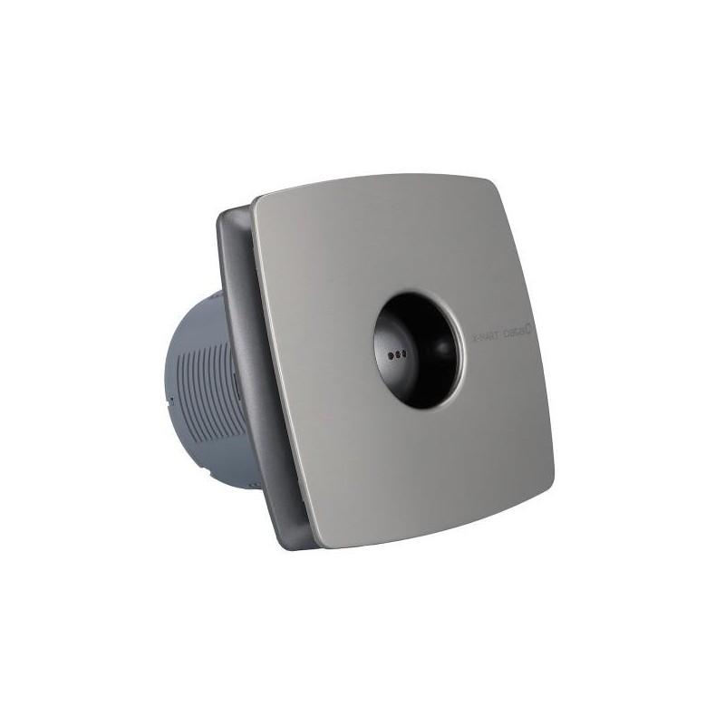 Axiální ventilátor na zeď, do stropu či do okna X-MART, supertichý, super design, snadné čištění, pr. 100 mm, 98 m³/h, 40 dB(A), 3 mmH2O (29 Pa), IPX4, doběhový časovač, nerez čelní deska!.
