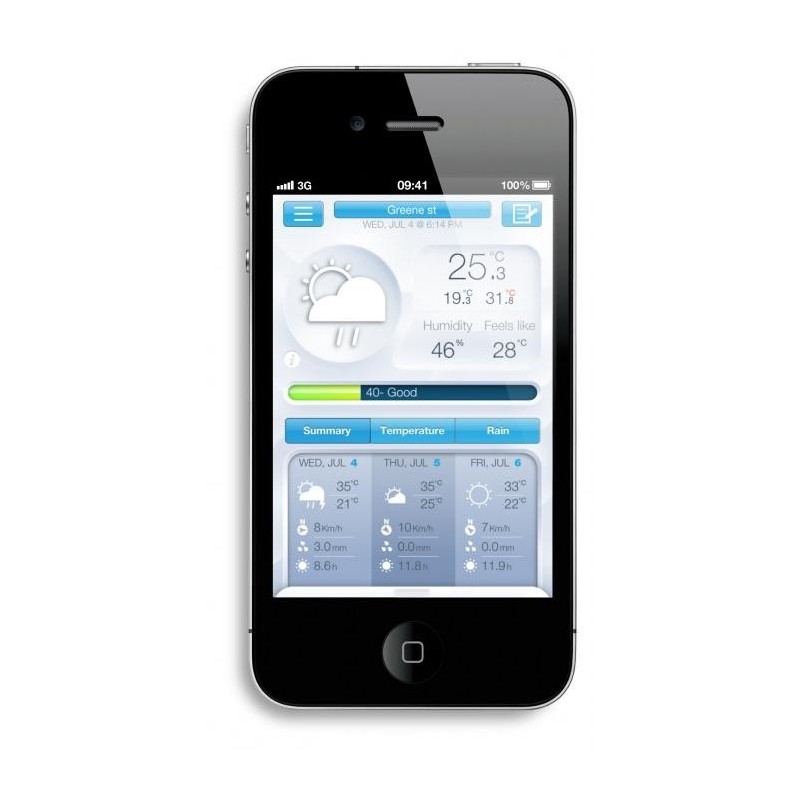 Meteorologická stanice Netatmo sbírá data z osobních prostředí jako je domov či pracoviště a bezdrátově je posílá přes WiFi do aplikace Netatmo, která se vyznačuje intuitivním, snadno čitelným rozhraním. Součástí aplikace je také předpověď počasí na následujících 7 dnů a v případě větších měst i informace o znečištění prostředí.