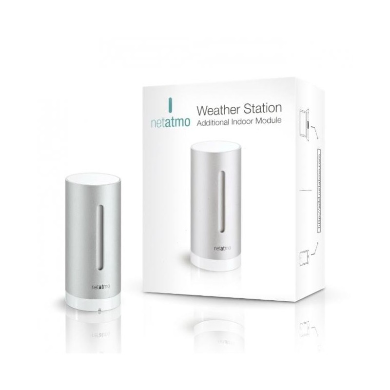 Dodatečný interiérový modul pro stanici Netatmo umožňuje monitorovat kvalitu ovzduší i v dalších místnostech ve Vašem domě kromě té, kde je umístěna hlavní modul stanice Netatmo. Modul sleduje teplotu, vlhkost a úroveň CO2 a hluku. Tato data jsou posílána do hlavní jednotky Netatmo, která je odesílá dál do aplikace Netatmo nainstalované na vašem zařízení.