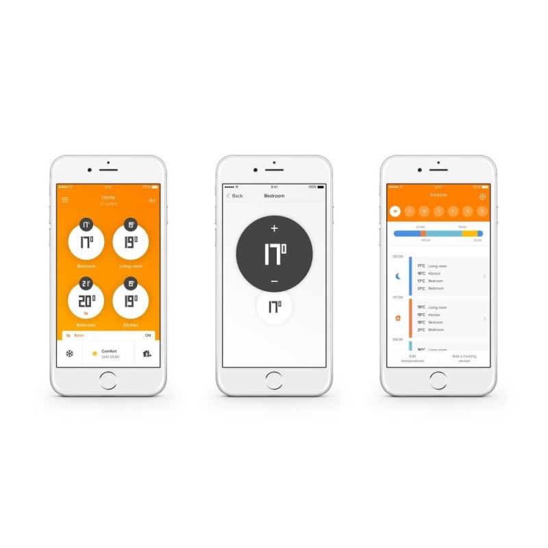 Chytrá regulace: chytré radiátorové termohlavice používají 2 senzory k analýze prostředí v místnosti v reálném čase a přizpůsobují vytápění podle úrovně slunečního svitu a užívání místnosti.