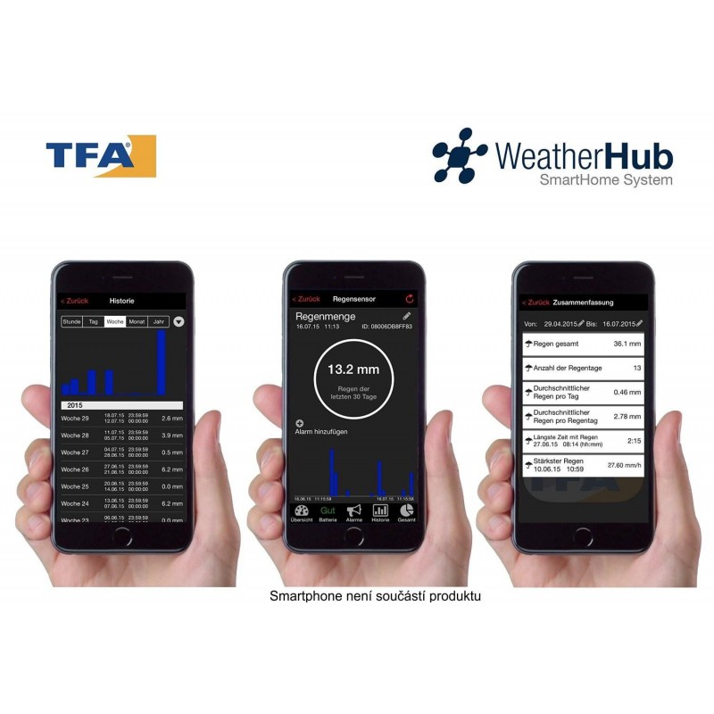 Přídavné bezdrátové elektronické čidlo pro měření srážek. Určeno pro monitorovací systém WEATHERHUB. Kompatibilní s produkty TFA 31.4001.02, 31.4002.02.