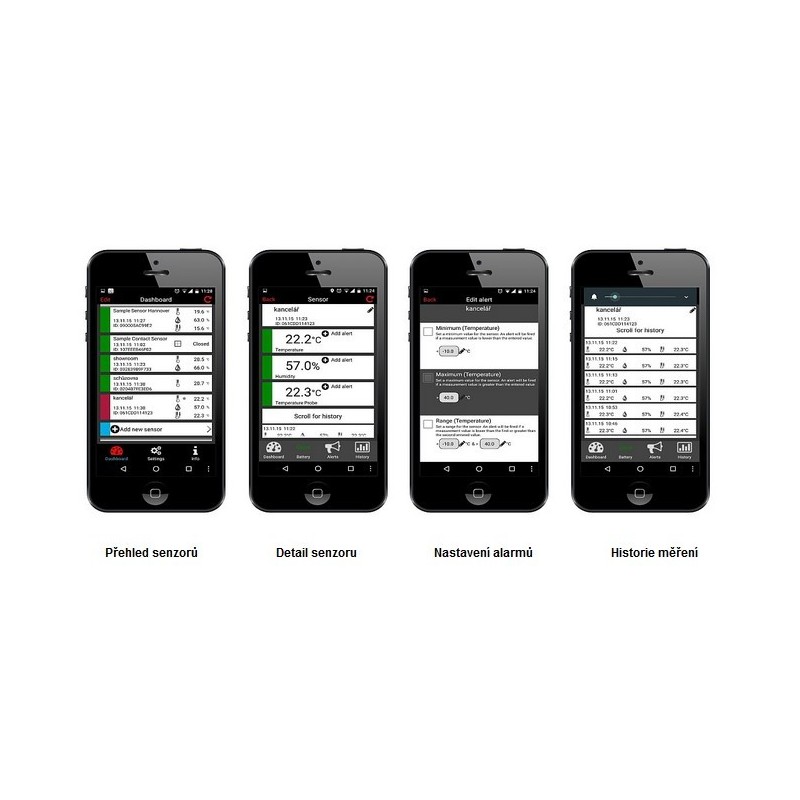 - možnost nastavení alarmů hodnot a notifikace v případě překročení nastavených alarmů
