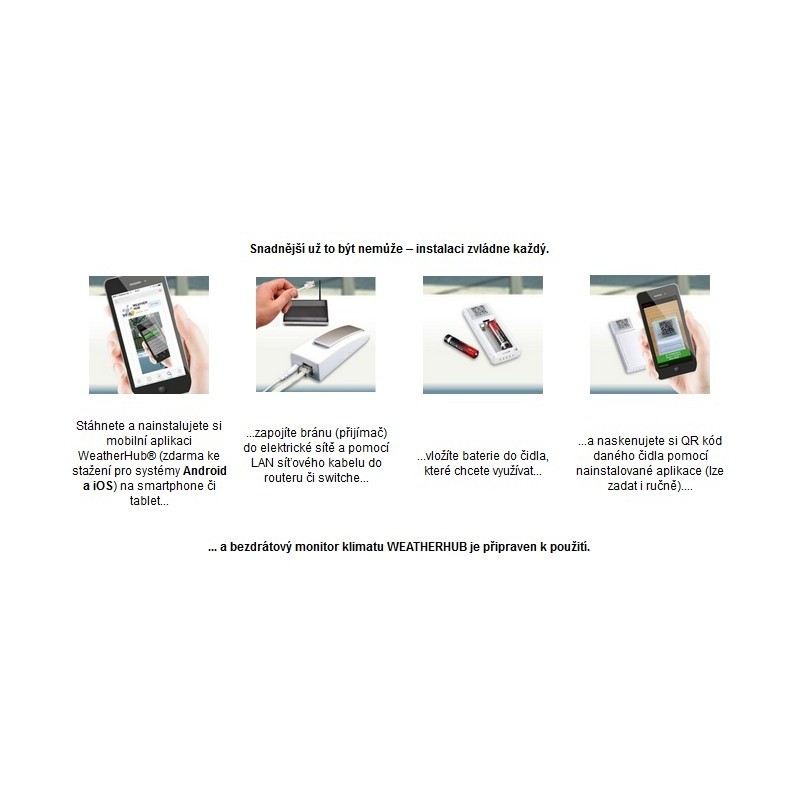WEATHERHUB neboli bezdrátový monitor klimatu je inteligentní zařízení pro bezdrátovou kontrolu klimatických podmínek doma či v práci. Toto zařízení udělá z vašeho chytrého telefonu nebo tabletu doslova mobilní meteostanici.