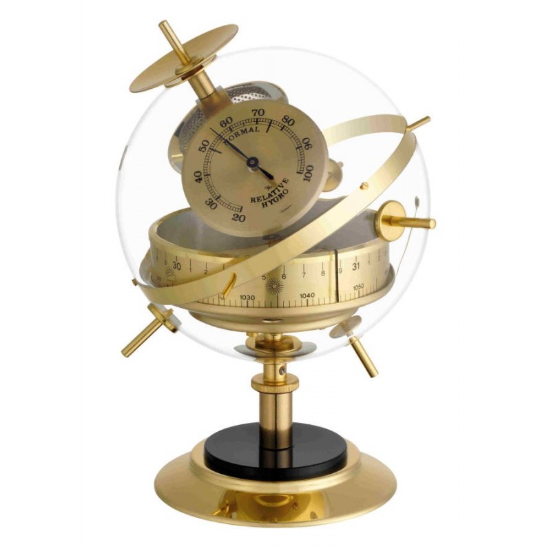 Meteostanice SPUTNIK pro vnitřní použití obsahuje barometr, vlhkoměr a teploměr - přístroje jsou v otočném plexi korpusu. Stojan je vyroben z mosazi. Jde o klasický stolní model s otevřeným barometrem. Barometr je nastavitelný
