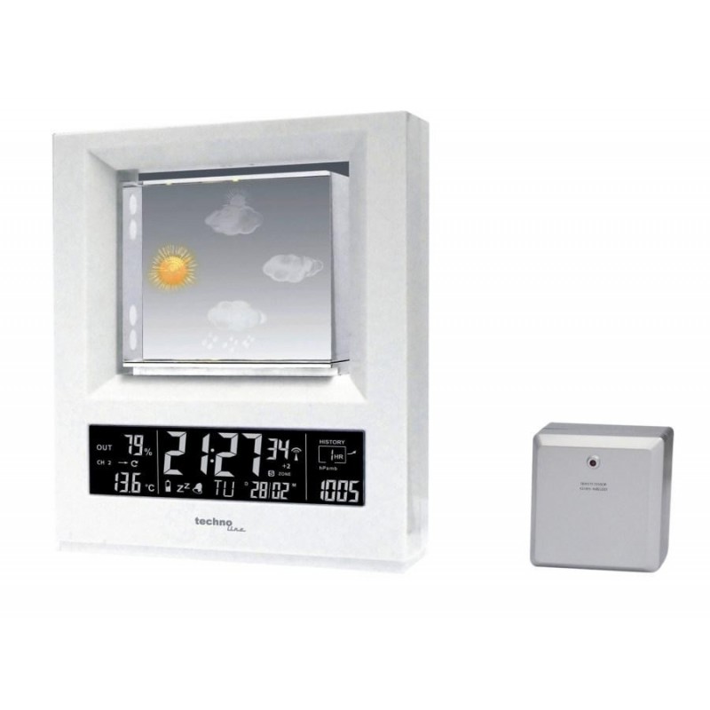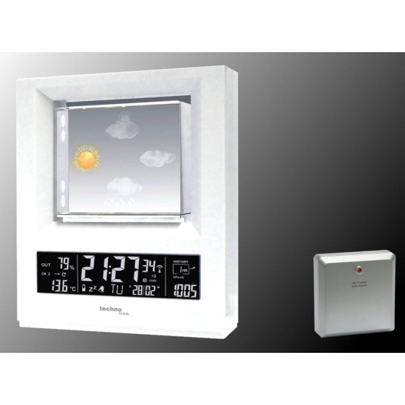 Na inverzním displeji se zobrazuje čas řízený DCF signálem, venkovní teplota a vlhkost, nebo vnitřní teplota a vlhkost, šipka tendence vnitřní a vnější teploty, kalendář a hodnota barometrického tlaku. Meteostanice je dále vybavena pamětí na maximální a minimální naměřené hodnoty vnější a vnitřní teploty a relativní vlhkosti, budíkem s funkcí opakovaného buzení (Snooze) po 5 minutách a indikátorem slabých baterií. Kromě toho lze zobrazit historii barometrického tlaku za uplynulých 12 hodin a nastavit si nadmořskou výšku v rozmezí -200 až +2000 mnm a časové pásmo v rozmezí -1 až +2 hodiny. Hlavní jednotka je napájena na síťový adaptér a záložní baterie a lze ji postavit na rovnou podložku.