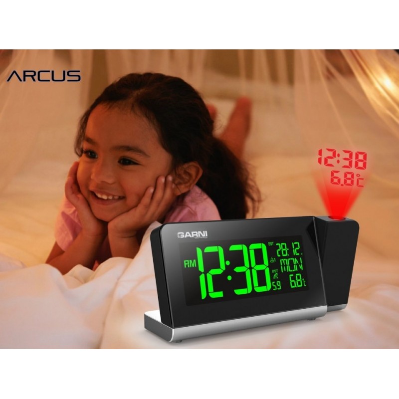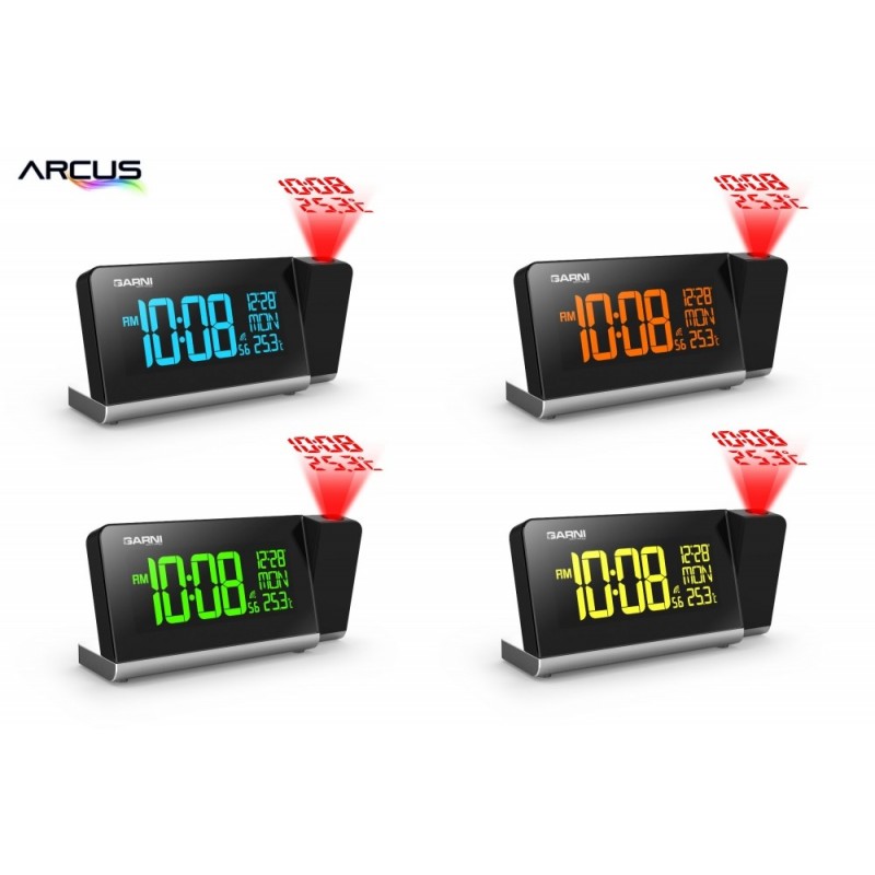 Digitální budík s projekcí času a vnitřní teploty s barevným inverzním V.A. displejem s ultra černým pozadím s možností volby nastavení zobrazení až z 256 barev. Displej má velké úhly pozorování, vysoký kontrast a ostrost