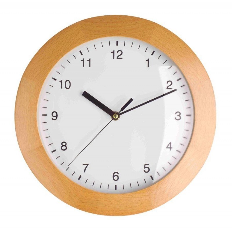 Rádiem řízené nástěnné hodiny v rámu z bukového dřeva se skleněným krytem. Ideální domů, do kanceláří, čekáren, předsíní a vestibulů.
