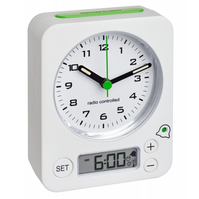 Pokud sháníte velký a jednoduše čitelný budík, pak je pro vás maxi-alarm TFA 60.1511.02.04 s analogovými hodinami a digitálním minidisplejem pro čas buzení ideální volbou. Rádiový signál DCF za vás vyřeší nastavení přesného času i přechod ze zimního na letní čas a naopak. Jeho masivní tělo pak odolá i nějaké té drobné havárii při ranním vstávání. Jde prostě o skvělého parťáka, se kterým už ráno nezaspíte!