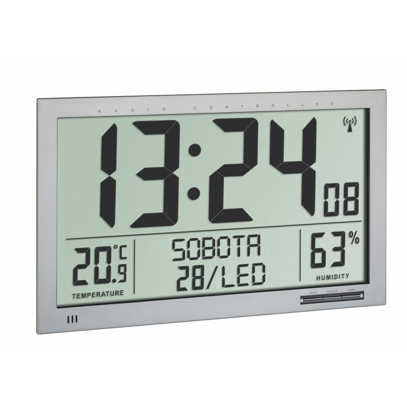 Nástěnné hodiny s teploměrem a vlhkoměrem TFA 60.4517.54 jsou vhodné do každé kanceláře, školy či na úřad a dalších větších prostor. Velký a přehledný displej zobrazuje jasně čitelnými číslicemi čas, datum, den v týdnu (v 10 jazycích - včetně českého jazyka) a pokojovou teplotu, vlhkosti. Hodiny a datum jsou řízeny DCF signálem. Přístroj je možné zavěsit na stěnu nebo umístit na vodorovnou podložku neboť je vybaven stojánkem.