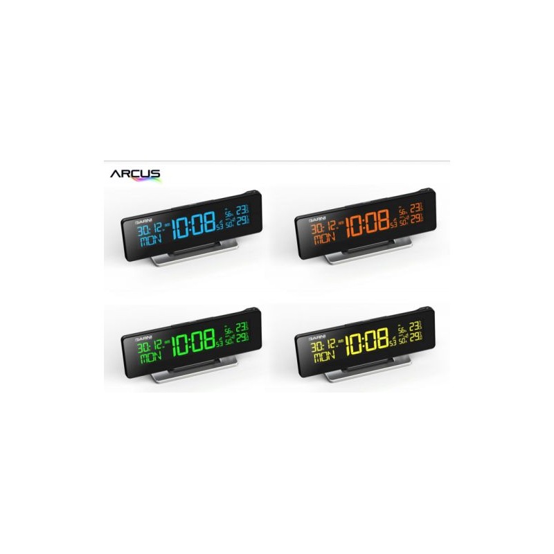 Digitální budík s barevným inverzním V.A. displejem s ultra černým pozadím s možností volby nastavení zobrazení až z 256 barev. Displej má velké úhly pozorování, vysoký kontrast a ostrost.
