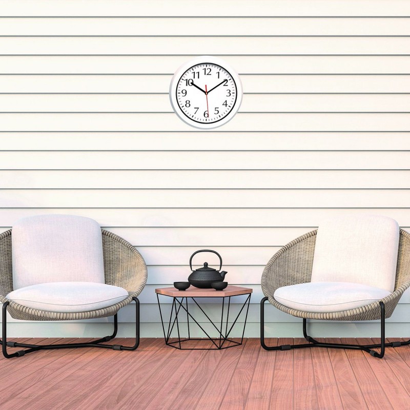 Hodiny mají jasný číselník s velkými čísly, který je snadno čitelný z dálky. Navíc jsou vybaveny pouzdrem odolným stříkající vodě a robustním plastovým rámem, a proto jsou hodiny OUTDOOR ideální pro venkovní použití. Dobrou práci odvedou i například v bazénech, wellness a sportovních zařízeních, školách či restauracích.