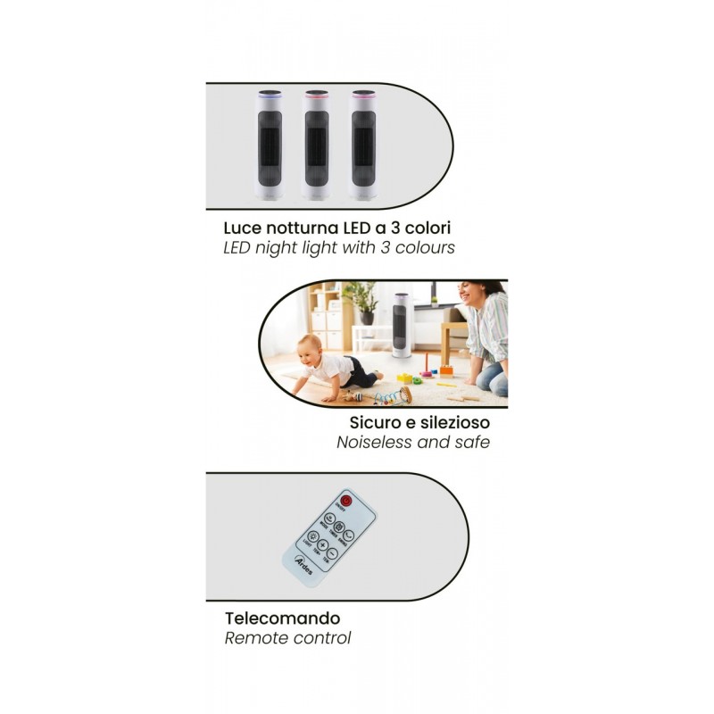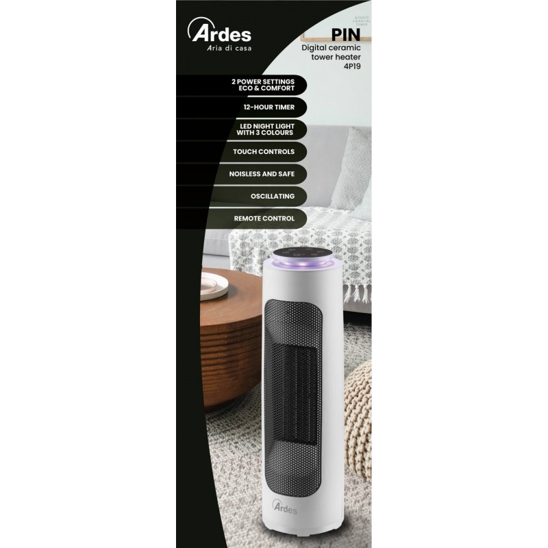 Digitální keramický sloupový teplovzdušný ventilátor s dotykovým ovládáním v moderním designu