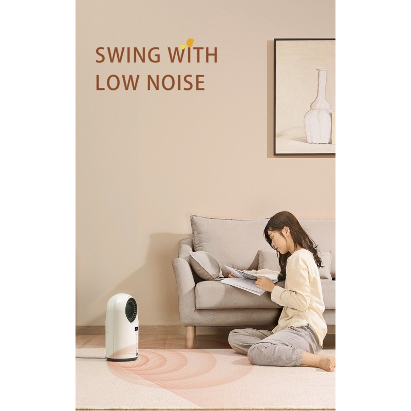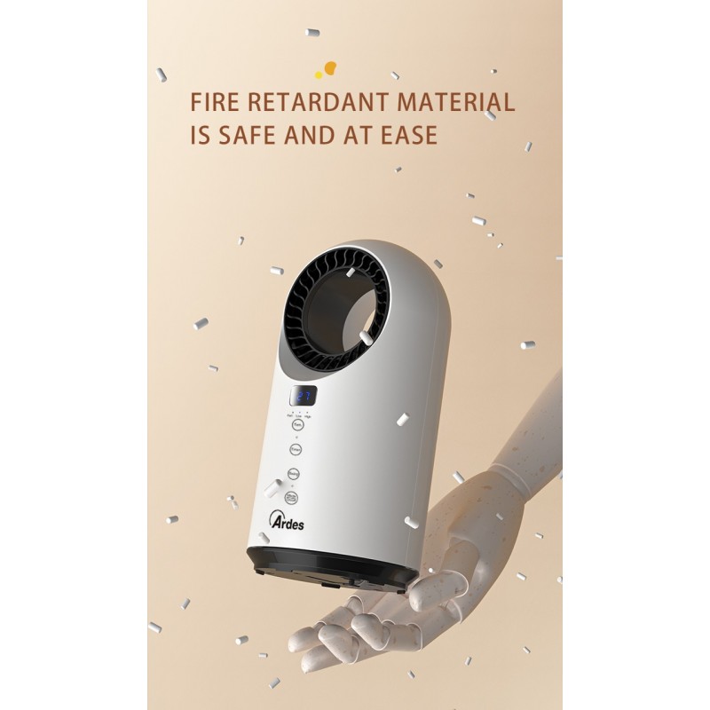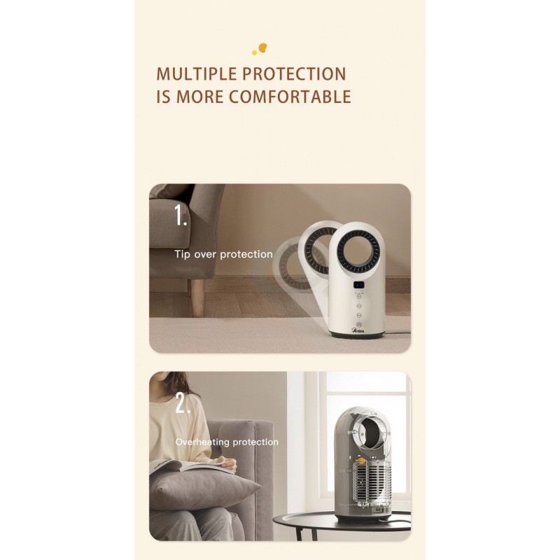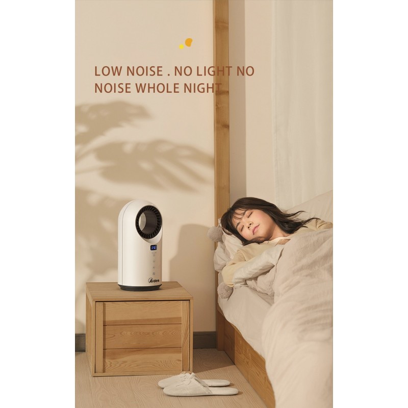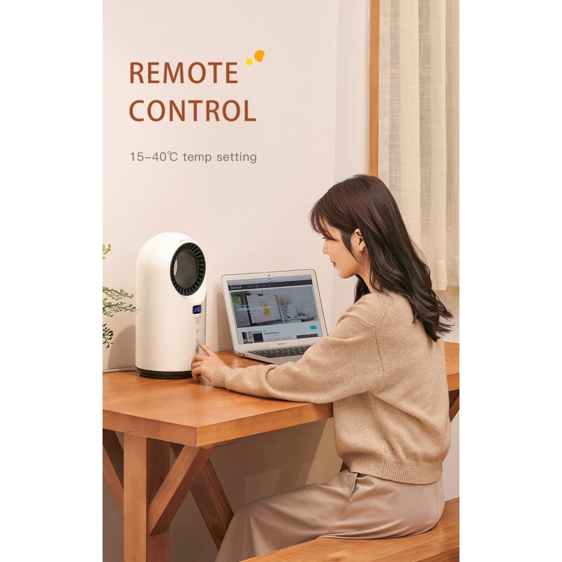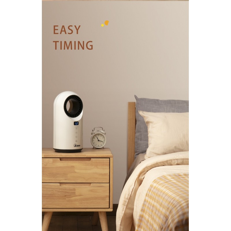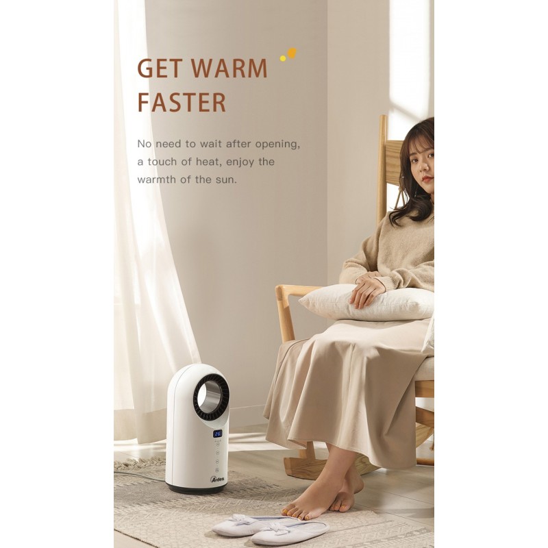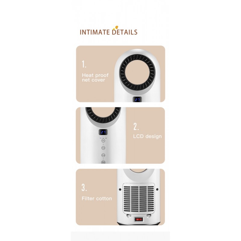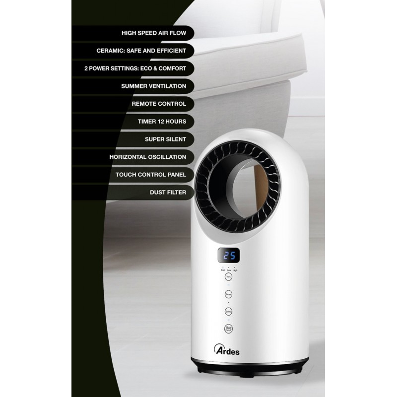 Bezlopatkový keramický teplovzdušný ventilátor v moderním designu s dotykovým ovládáním