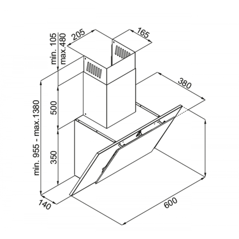 Moderní nástěnný komínový odsavač par Guzzanti GZ 650