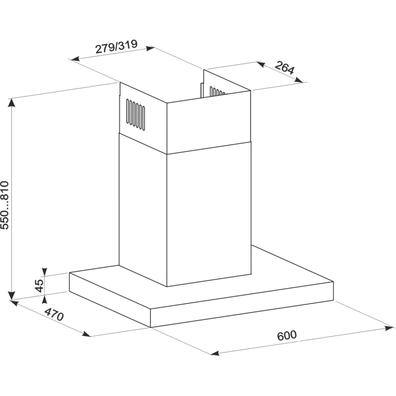 3 volitelné stupně odsávání - velký výkon 302 - 632 m3/h - snadno vyčistí vzduch v kuchyni od mastnoty a zápachů, díky tomu je ideální pro velké prostory moderních kuchyní