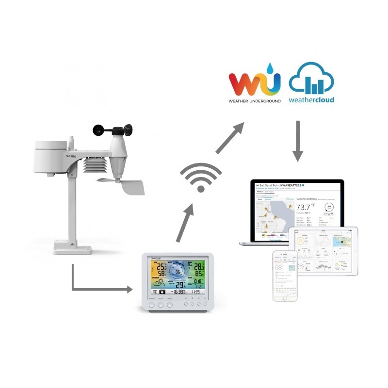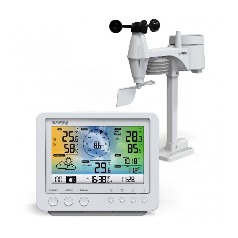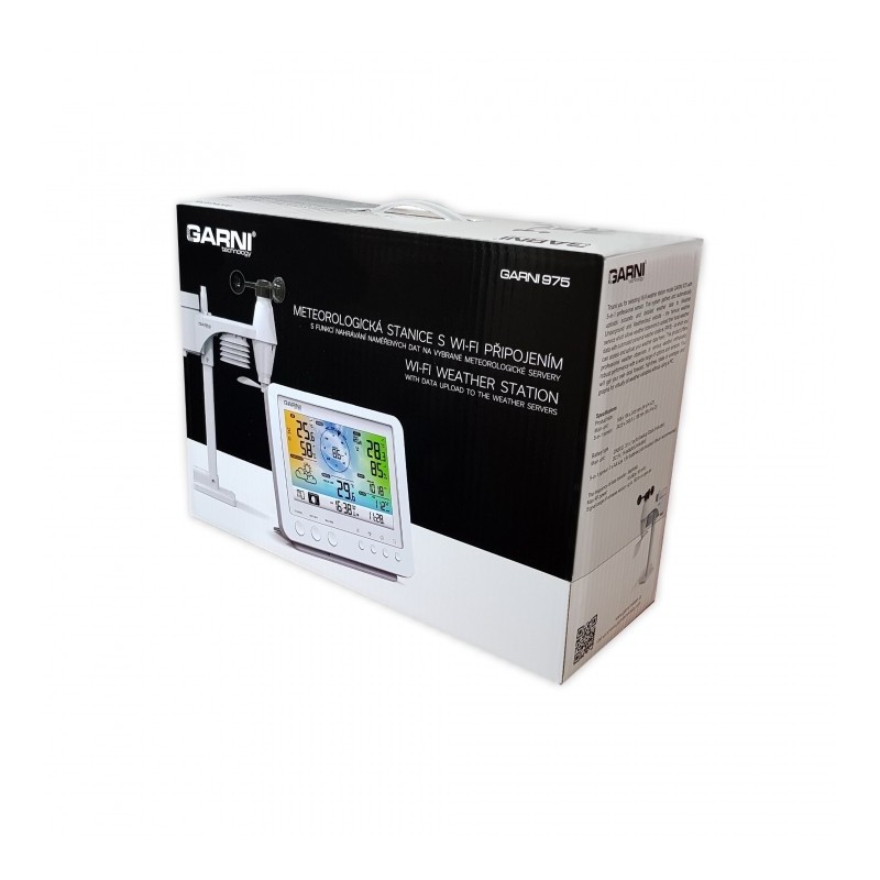 Wi-Fi meteorologická stanice s integrovaným bezdrátovým čidlem 5 v 1 model GARNI 975 je vybavena mnoha funkcemi zajišťujícími informace o předpovědi počasí. Integrované bezdrátové čidlo, které je osazeno vysoce přesným švýcarským čidlem SENSIRION,  pracuje na frekvenci 868 MHz a měří teplotu, relativní vlhkost, rychlost a směr větru a dešťové srážky.