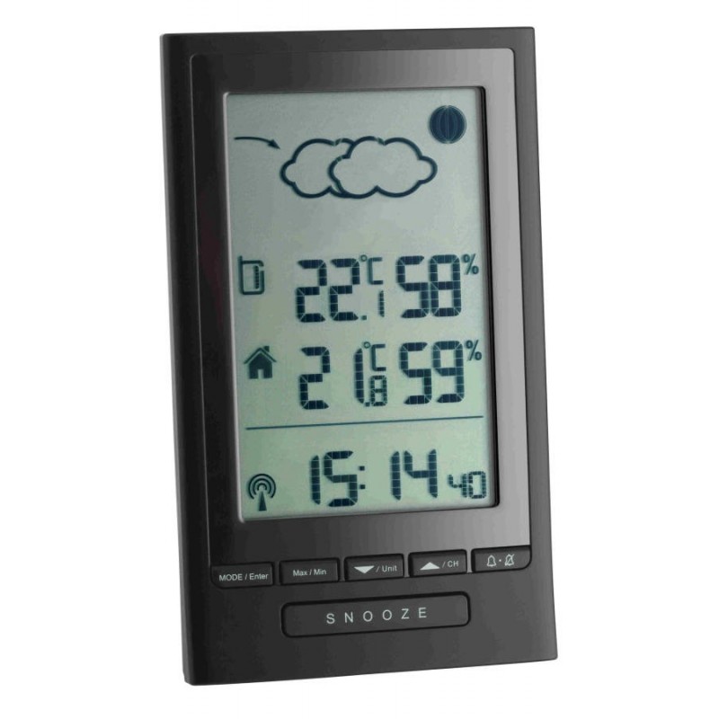 Digitální bezdrátová meteostanice TFA 35.1122 MODUS PLUS umí měřit venkovní a vnitřní teplotu i vlhkost, zobrazuje symbolovou předpověď počasí, indikátor tendence počasí i fáze měsíce. Od většiny meteostanic v této kategorii se liší možností dočasného celoplošného podsvícení displeje oranžové barvy. Nechybí ani čas řízený DCF signálem, kalendář a budík s možností nastavení dvou různých budících časů a funkcí snooze (opakovené buzení). Stanice umí komunikovat až se 3 čidly typu TFA 30.3196 (jedno je součástí balení), a to na vzdálenost až 75 m ve volném prostoru.