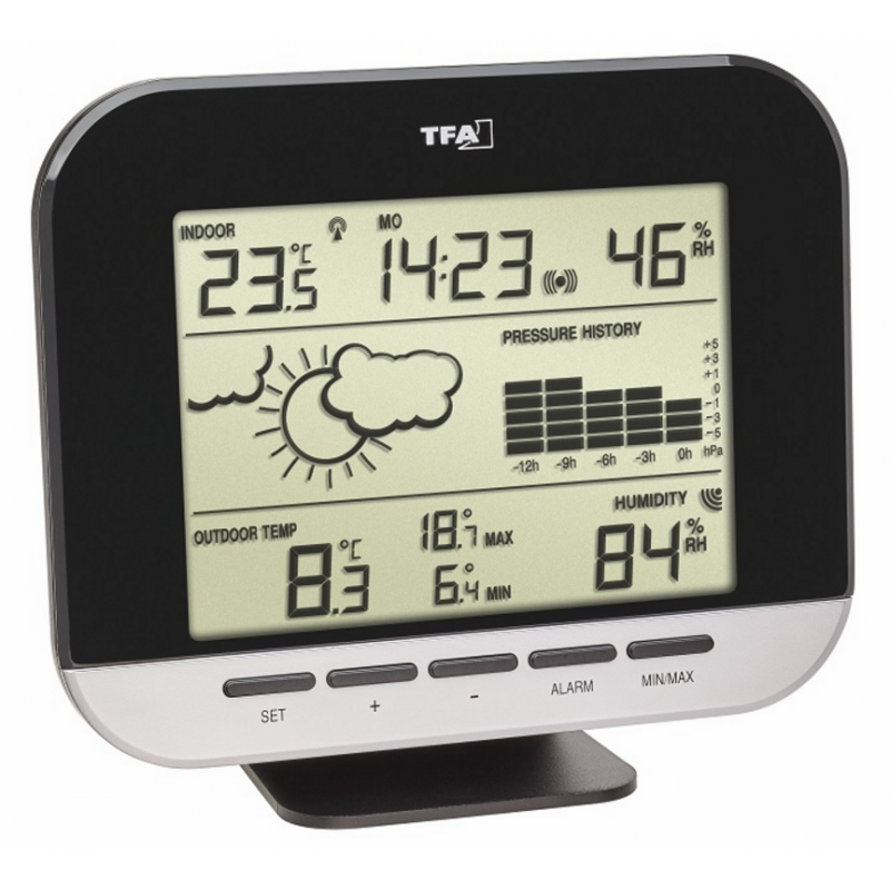 Bezdrátová meteostanice, která měří teplotu a vlhkost vevnitř i venku. Stanice disponuje funkcí záznamu minimálních a maximální hodnot teploty s časem a datem záznamu, předpovědí počasí, tendencí atmosférického tlaku a grafickým vývojem tlaku za posledních 12 hodin. Velkou výhodou je také budík a rádiově řízený čas s datem.