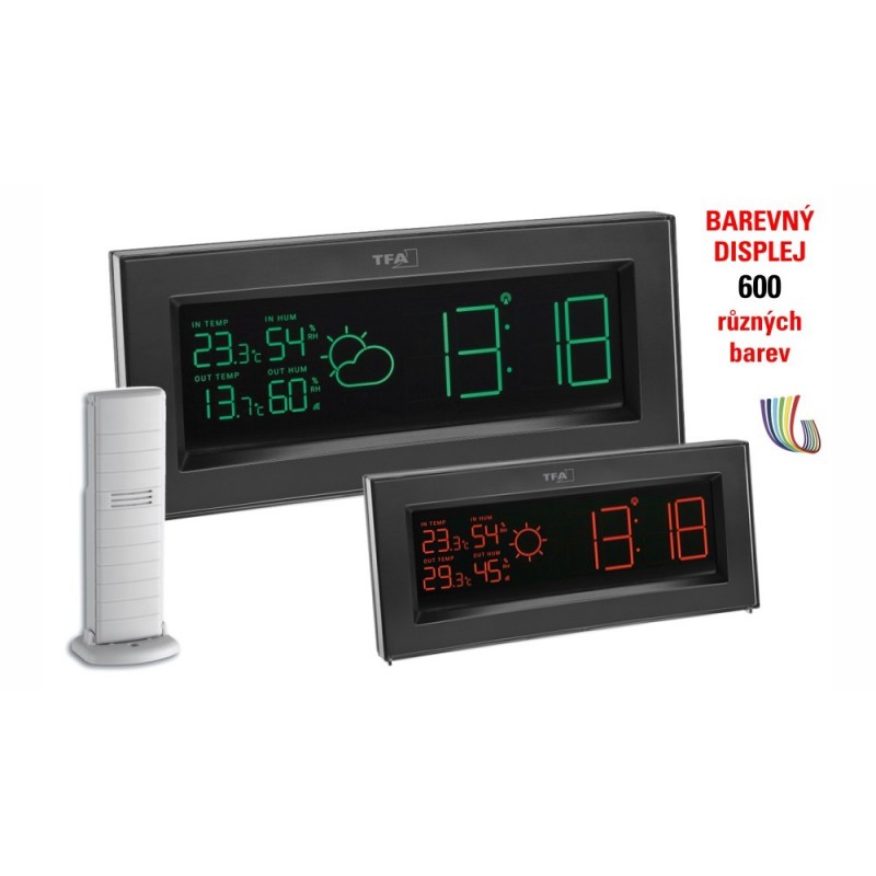 Meteostanice TFA Coloris disponuje špičkovým barevným displejem s vysokým kontrastem, který umožňuje několik režimů zobrazení: automatické prolínání mezi 600 barvami textu, změna barvy textu na základě aktuální venkovní teploty (22 barev) nebo pevně nastavená barva textu. Stanice Coloris dále nabízí: