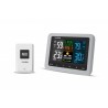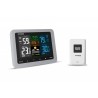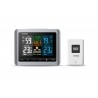 Meteorologická stanice s inverzním barevným displejem s časem a datem řízenými rádiovým signálem DCF-77, budíkem, měřením vnitřní teploty, relativní vlhkosti a absolutního barometrického tlaku, bezdrátovým čidlem pro měření vnější teploty a relativní vlhkosti.