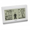Díky zobrazení vnitřní teploty a vlhkosti můžete získat představu o vnitřním klimatu ve vašem domě. Zobrazené úrovně komfortních zón poskytují další informace o kvalitě vzduchu v místnosti. Max. -Min. funkce umožňuje zjistit na maximální a minimální hodnoty venkovní teploty a vnitřní teploty a vlhkosti. Čas, datum a den v týdnu jsou řízeny rádiovým signálem DCF. Díky budíku s nastavitelnou funkcí opakovaného buzení můžete meteorologickou stanici použít také jako rádiem řízený budík. Jako speciální funkce zobrazuje jasný displej meteorologické stanice čas východu a západu slunce s délkou dne a aktuální fází měsíce ve vašem místě. Aby bylo zajištěno, že je digitální displej snadno čitelný i v noci, lze stisknutím senzorového tlačítka na 10 sekund zapnout modravé osvětlení pozadí.