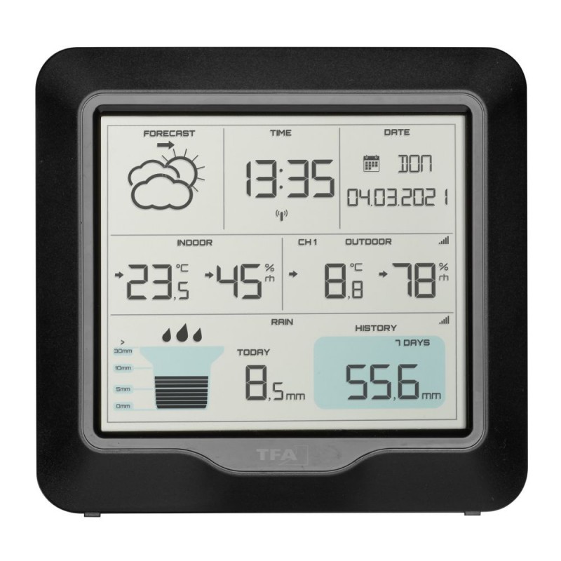 Bezdrátová meteostanice TFA 35.1160 RAIN PRO je vhodná zejména pro ty, kteří hledají kompromis mezi domácí a hobby kategorií - RAIN PRO totiž měří kromě základních hodnot (vnitřní a vnější teplota a vlhkost, předpověď počasí podle barometrického tlaku) také množství srážek. Díky grafickému zobrazení na displeji snadno zjistíte denní úhrn srážek. Zobrazit si můžete i úhrny za poslední hodinu, den, týden, měsíc nebo rok. Na displeji lze zjistit i celkový úhrn všech naměřených srážek nebo historii měsíčních úhrnů za posledních 12 měsíců.