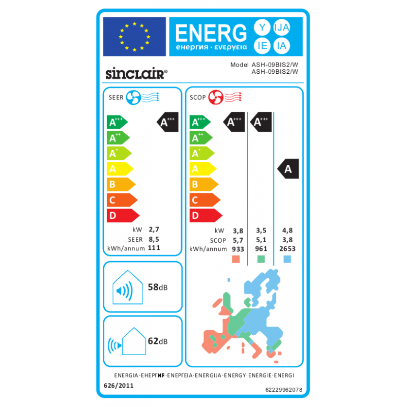 Energetická třída A+++ / A+++. Výkon chlazení 2,7 kW. Výkon topení 3,5 kW. Odvod kondenzátu na obě strany. Skrytý displej. 7 rychlostí ventilátoru. 2-stupňový kompresor. Automatický režim s nastavitelnou teplotou...