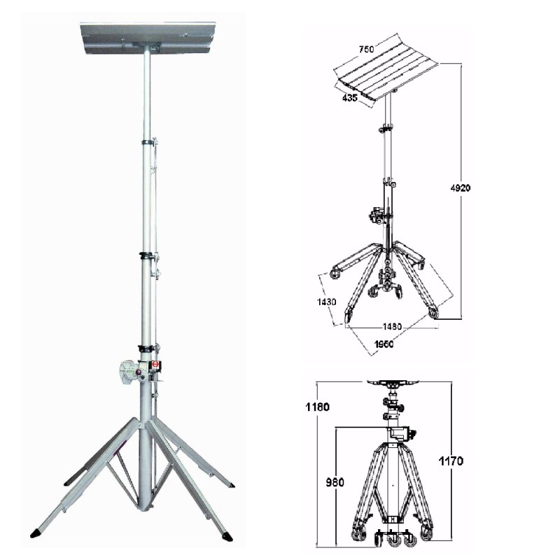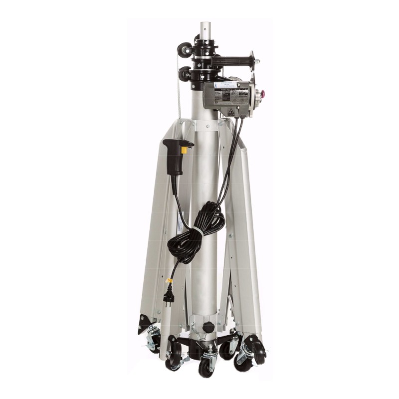 Elektrický provoz - 230V / 50Hz vyrobeno z tepelně zpracovaného robustního hliníku rozloženo během pár sekund 4 teleskopické nohy pro umístění na nerovném povrchu klička pro ruční provoz v případě výpadku elektrické energie tlačítko nouzového zastavení.