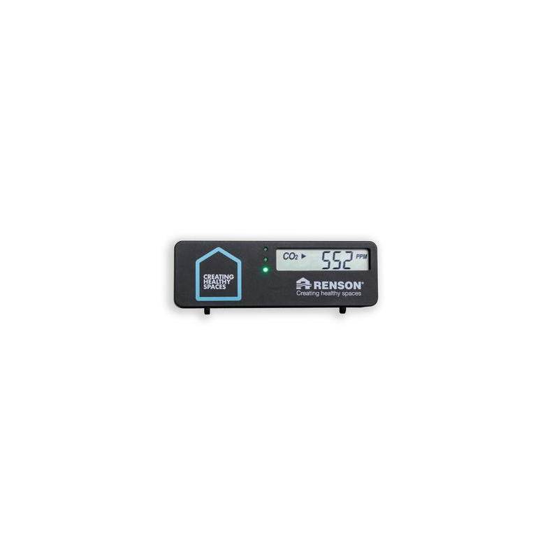 Měřák zobrazuje aktuální hodnotu CO2 pomocí barevné LED signalizace: Zelená – hodnota CO2 je pod 800 ppm, žlutá pro hodnotu CO2 v rozmezí 800-1200 ppm a červená pro hodnotu CO2 nad 1200 ppm. Zařízení zobrazuje i aktuální teplotu v místnosti.