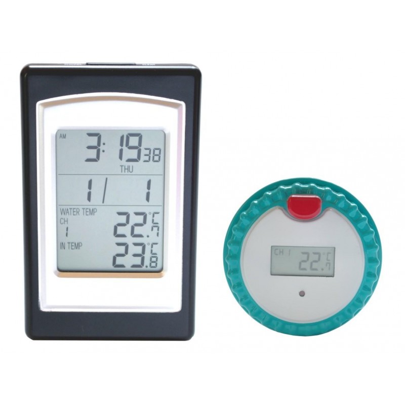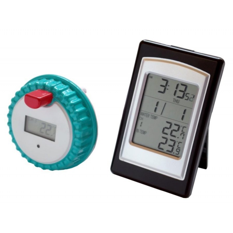 Bezdrátový bazénový digitální teploměr měří teplotu vody až ze 3 bezdrátových čidel pomocí radiového signálu na frekvenci 433 MHz. Dosah čidel je až 100 m ve volném prostoru. Na hlavní jednotce je rovněž zobrazena aktuální teplota vzduchu. U obou hodnot lze zobrazit minimální a maximální naměřené hodnoty. Přístroj je vybaven také alarmem s funkcí odloženého buzení "snooze".