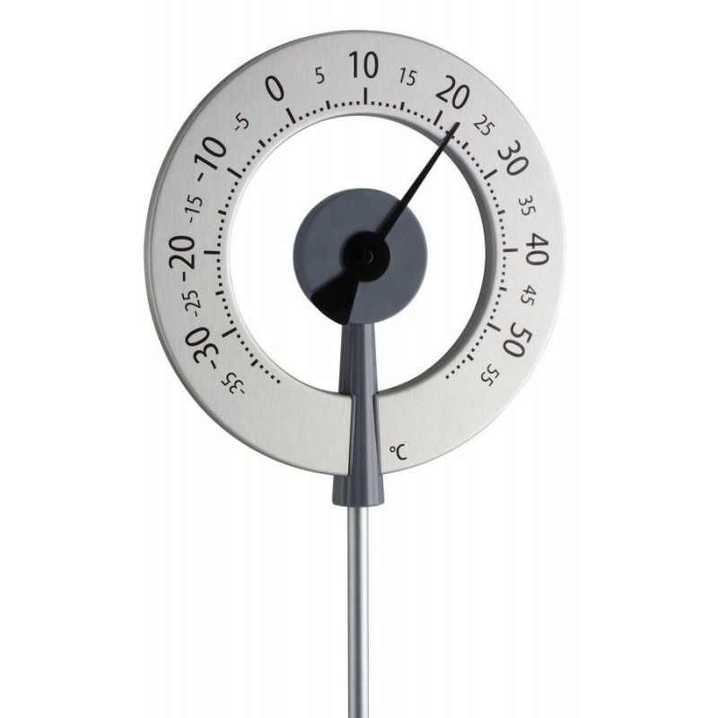 Bimetalový zahradní teploměr v novém "lízátkovém" designu. Odolný povětrnostním podmínkám. Vhodný k zapíchnutí do půdy. Neobyčejný design, stupnice a černý ukazatel vyrobený z eloxovaného hliníku, jenž je odolný proti korozi.