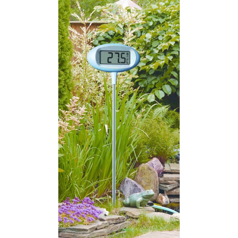 Netradiční zahradní teploměr TFA 12.2024,06 Orion disponuje velkým displejem. Na přehledném displeji je možné nastavení promítání akutální teploty, střídání aktuální teploty a hodin, střídání aktuální teploty,hodin a nejvyšší a nejnižší naměřené teploty. Teploměr disponuje funkcí automatického resetu naměřených hodnot. Tyč na zapíchnutí je vyrobena z hliníku, teploměr je voděodolný, vhodný na zapíchnutí do země.