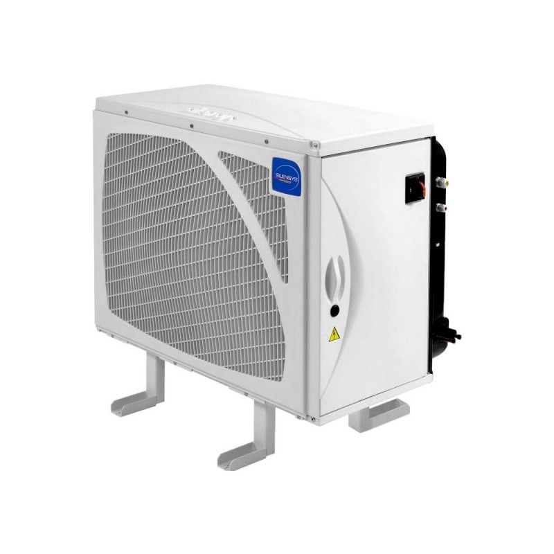 - venkovní krytá jednotka v nízkohlučném provedení SIL - hermetický pístový kompresor L´Unite Hermetique - uzavírací ventily sacího a výtlačného potrubí vč. plnicích ventilů - vzduchový kondenzátor s povrchovovu úpravou - výhřev oleje kompresoru - EC ventilátor - kompletní elektrické propojení vč. připojovací svorkovnice - montážní rám na upevnění jednotky - kompletní protihlukové krycí plechy - kombinovaný presostat NT/NT - filtr, průhledítko, tlumič hluku chladiva - možnost instalace na zeď / podlaha Chlad. Výkon (kW) Hlučnost 10m dB Napětí Potrubí El.