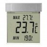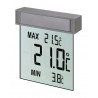 Digitální teploměr na okno s velkým a přehledným displejem (85 x 80 mm). Teploměr si pamatuje maximální a minimální naměřené hodnoty a automaticky je resetuje. Teploměr je odolný povětrnostním vlivům, na okno se nalepuje jen jeho držák, do kterého se teploměr zasune. Při umývání okna se zase může vysunout a na okně je pouze držák. Ideální teploměr pro plastová okna, není totiž potřeba nic vrtat, šroubovat atd.